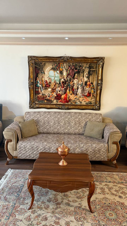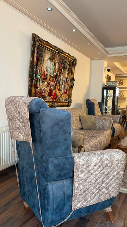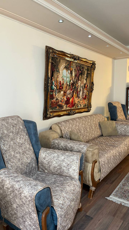 طبق سایز مبل مشتری دوخته می شود با دو رنگ توسی و کرم قهوه ای